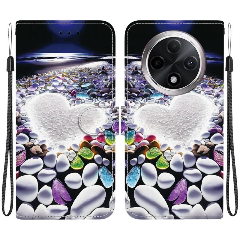 Θήκη τηλεφώνου από δέρμα με πολύχρωμο σχέδιο κρυστάλλινης υφής για OPPO A3 Pro 5G / K12X 5G (σε σχήμα καρδιάς)