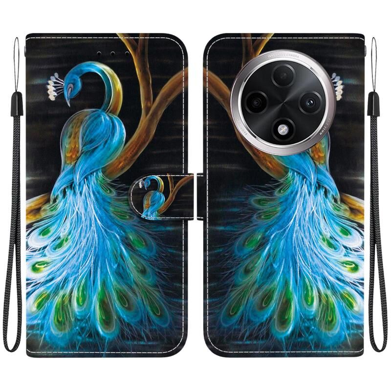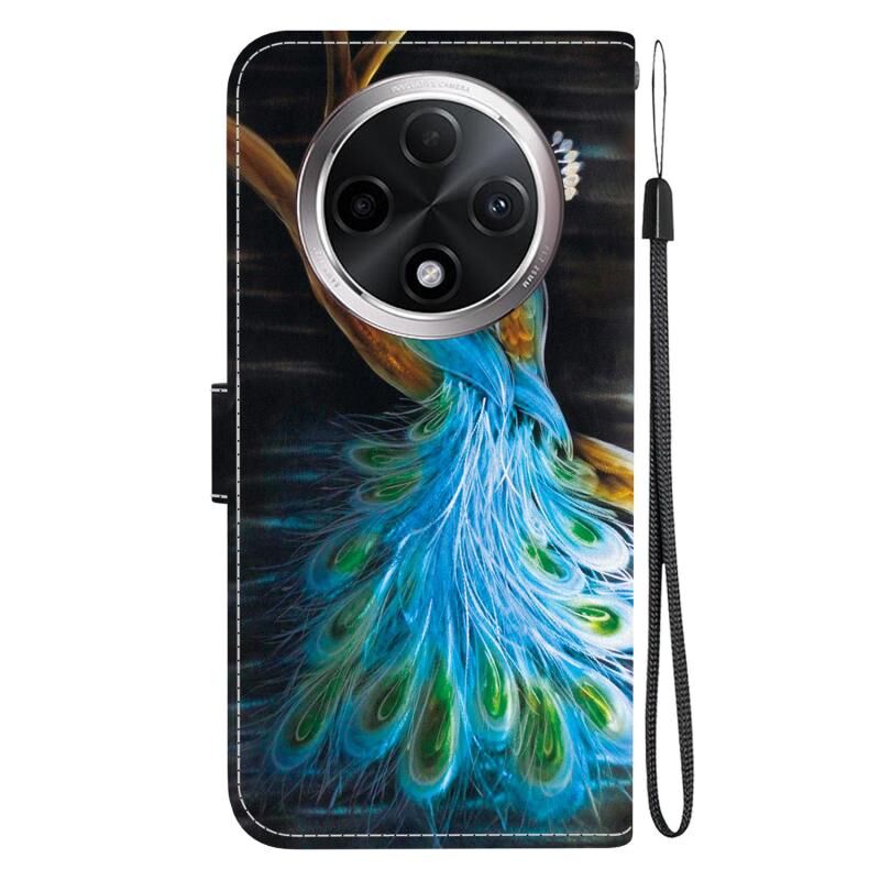 Θήκη τηλεφώνου από δέρμα με πολύχρωμο σχέδιο κρυστάλλινης υφής για OPPO A3 Pro 5G / K12X 5G (Παγόνα)
