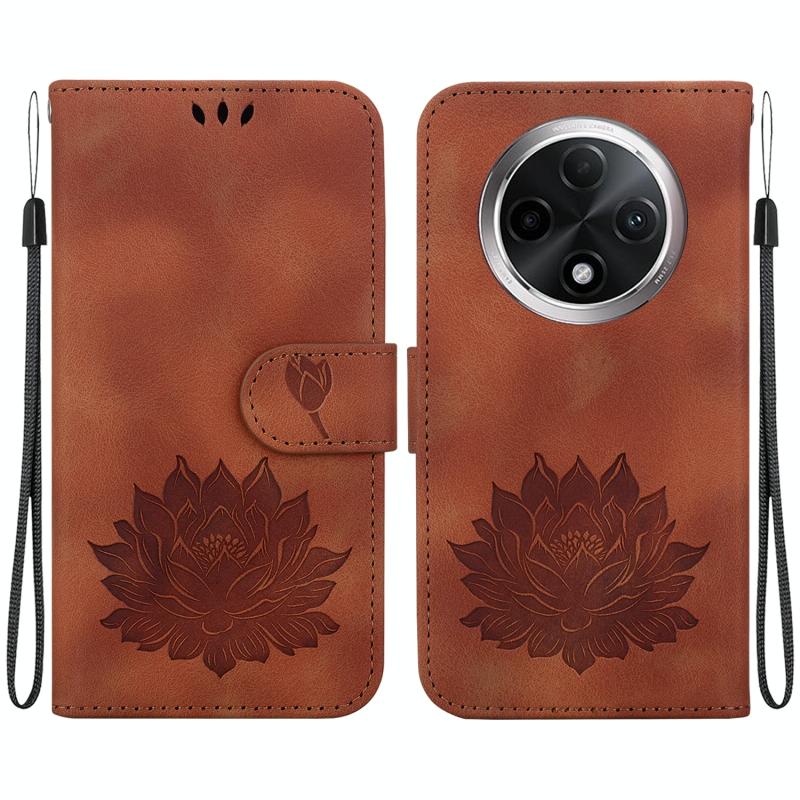 For OPPO A3 Pro 5G Lotus Embossed Leather Phone Case(Brown)