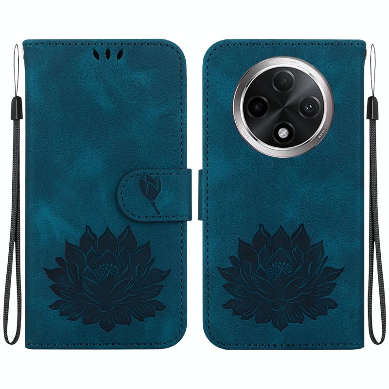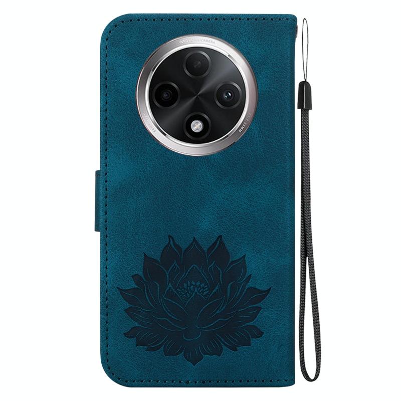 For OPPO A3 Pro 5G Lotus Embossed Leather Phone Case(Dark Blue)