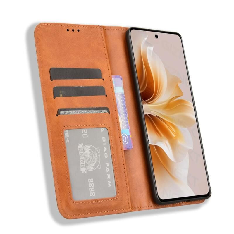 Για OPPO A3 Pro 5G Μαγνητική πόρπη ρετρό υφή δερμάτινη θήκη τηλεφώνου (Καφέ)