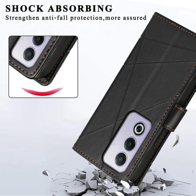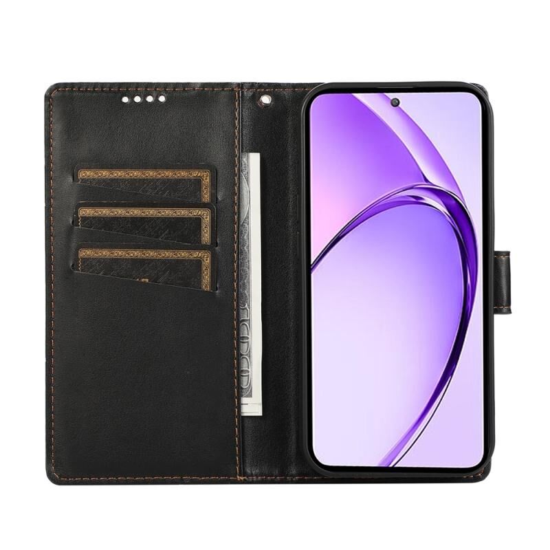 Θήκη τηλεφώνου για OPPO A3 Pro 5G από γνήσιο δέρμα PU με ανάγλυφη υφή και γραμμές (Μαύρο)