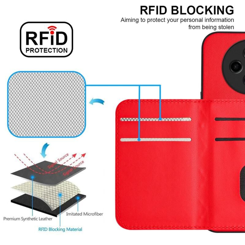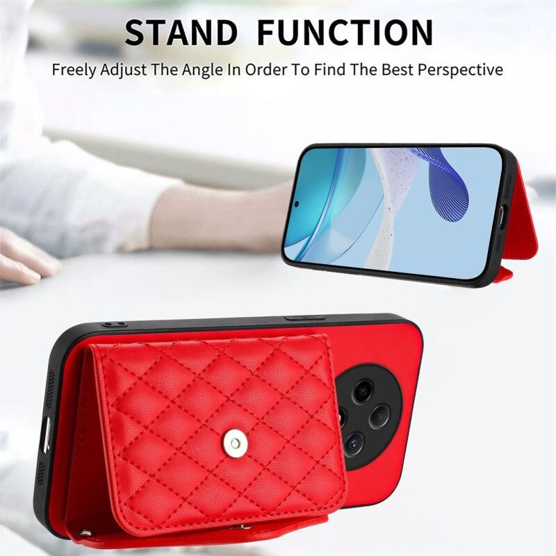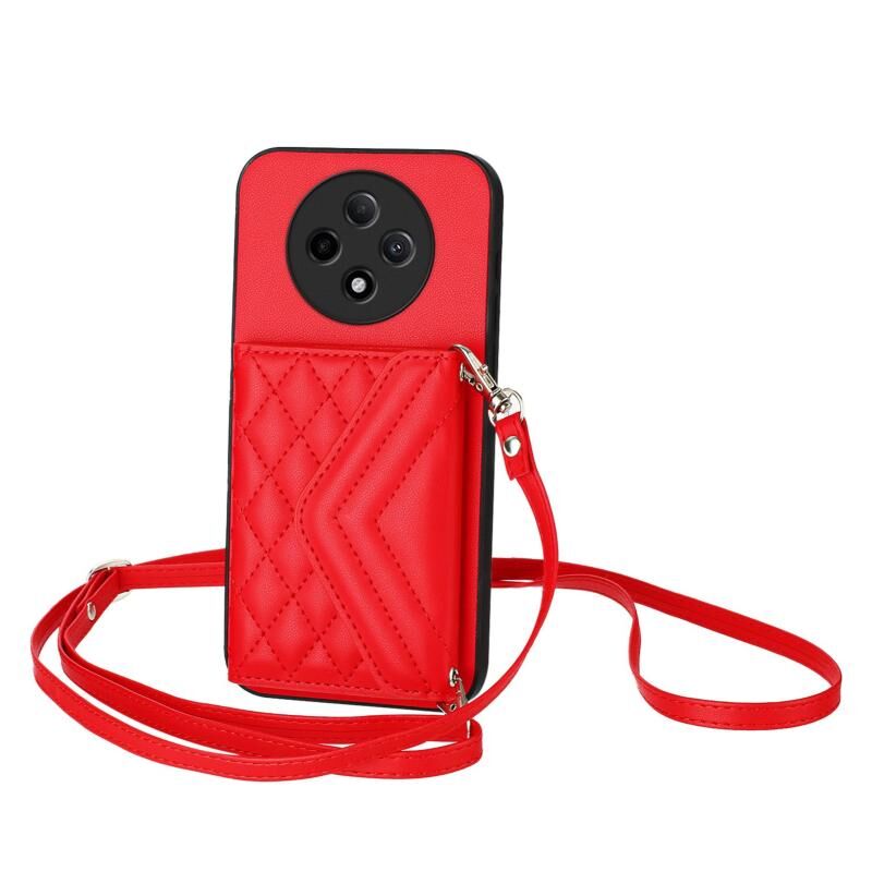 Για OPPO A3 Pro 5G Rhombic υφή κάρτα τσάντα RFID υπόθεση τηλεφώνου με μακρύ κορδόνι (κόκκινο)