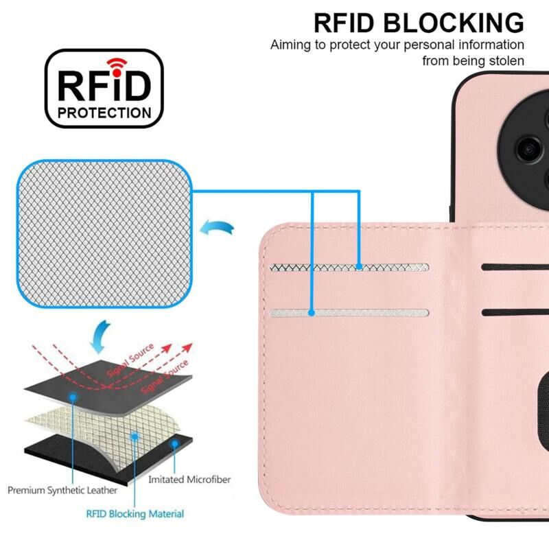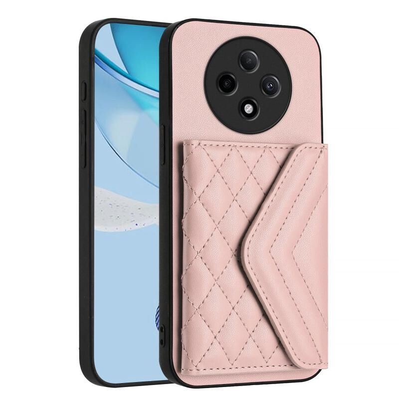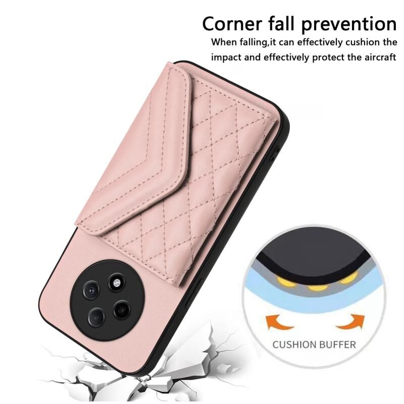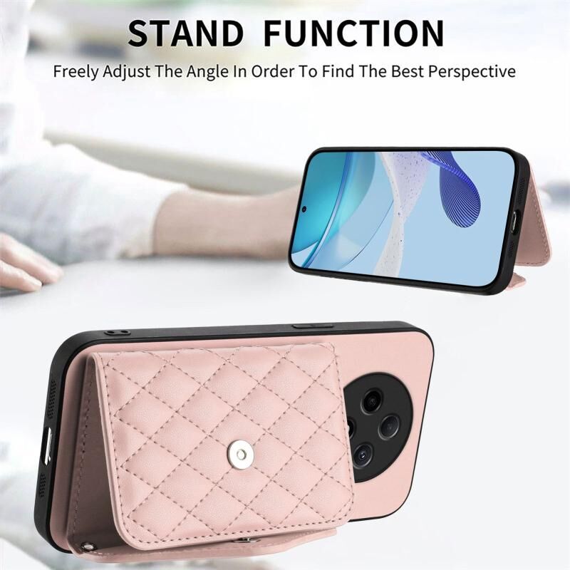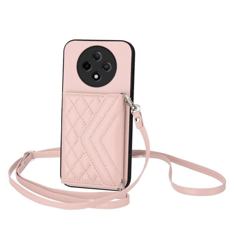 Για OPPO A3 Pro 5G Rhombic υφή κάρτα τσάντα RFID υπόθεση τηλεφώνου με μακρύ κορδόνι (Rose Gold)