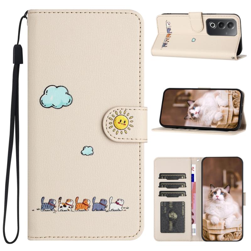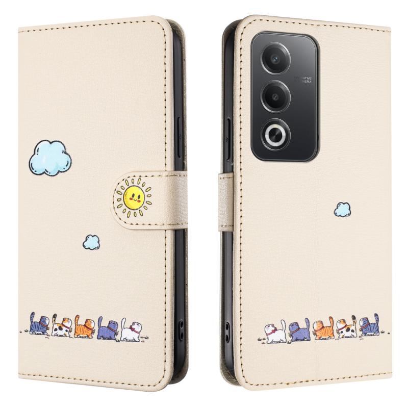Θήκη τηλεφώνου από δέρμα με σχέδια καρτούν γάτας για OPPO A3 Pro (Μπεζ-Λευκό)