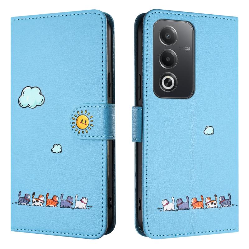 Θήκη τηλεφώνου από δέρμα με σχέδια καρτούν γάτας για OPPO A3 Pro (Μπλε)