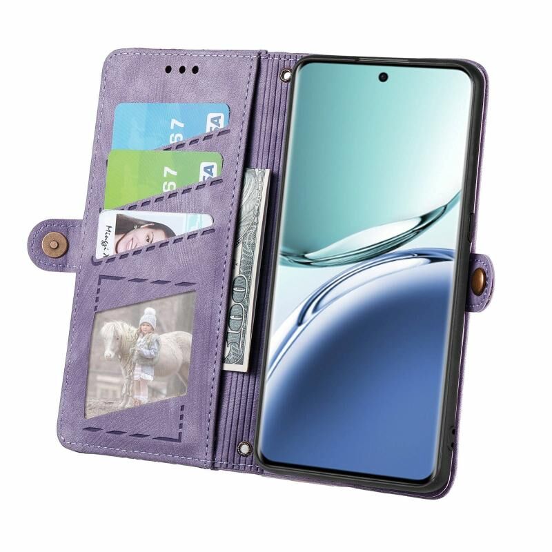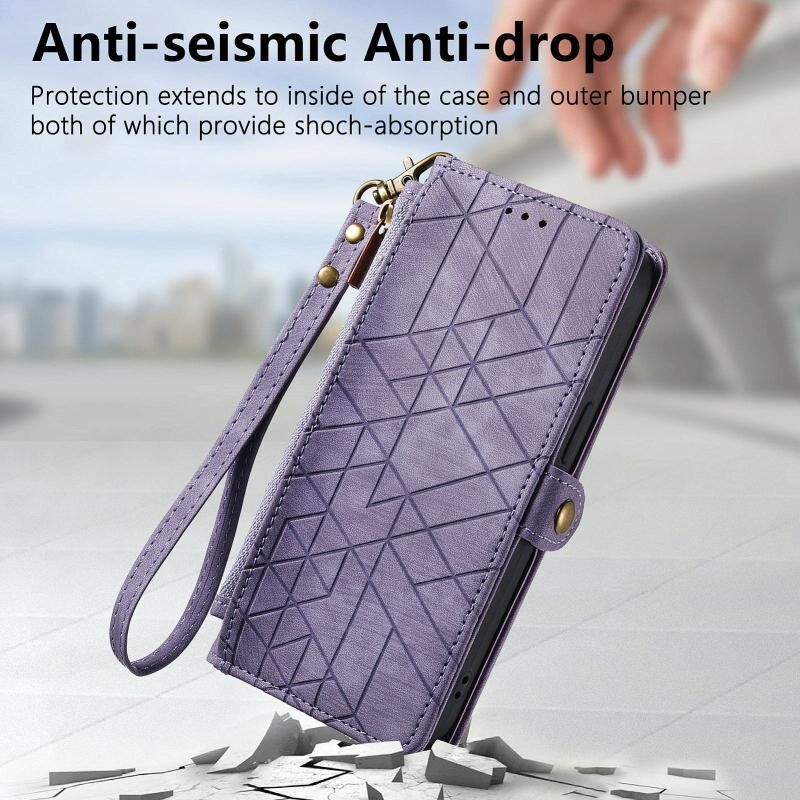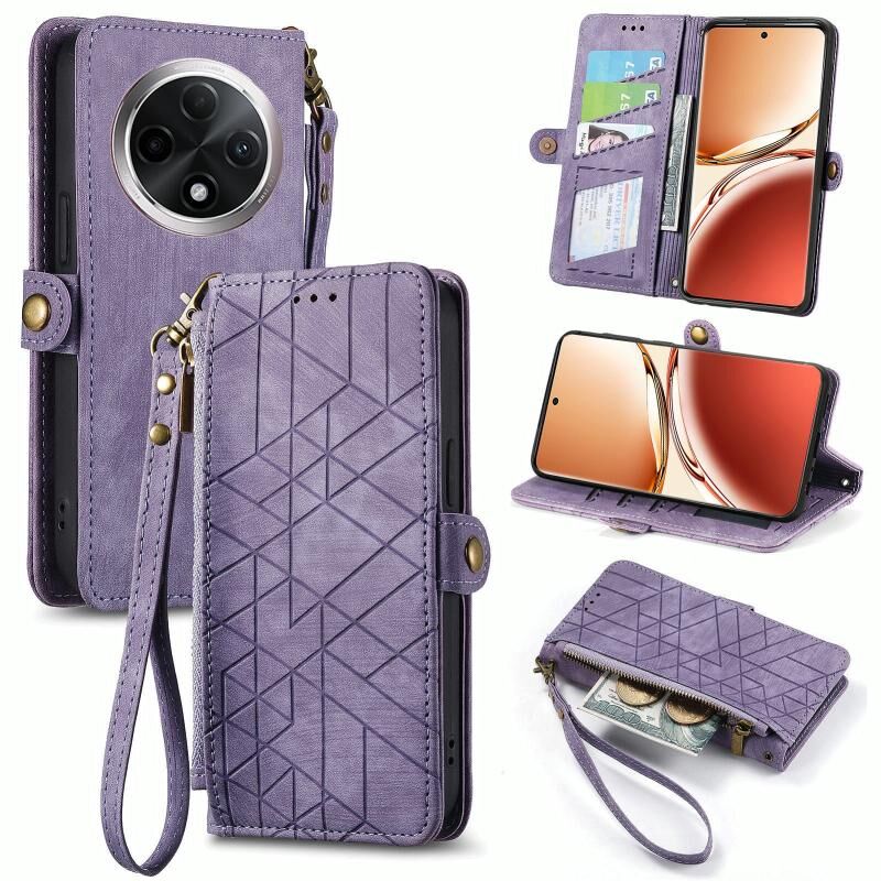 Για OPPO A3 Pro γεωμετρική φερμουάρ πορτοφόλι πλευρά πόρπη δερμάτινη θήκη τηλεφώνου (Μωβ)