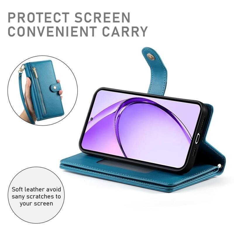 Για OPPO A3 Pro Global Nine Card-slot φερμουάρ πορτοφόλι τσάντα δερμάτινη θήκη τηλεφώνου (Μπλε)