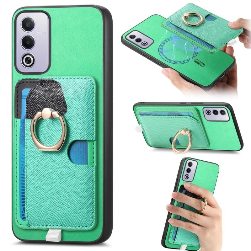 Θήκη τηλεφώνου MagSafe για OPPO A3 Pro Global, Ρετρό Δερμάτινη με Σταυρωτό Σχέδιο και Θήκη Κάρτας στο Πλαϊνό Μέρος (Μπλε)