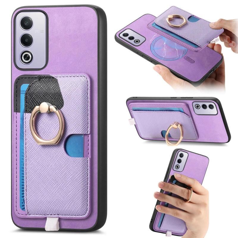Θήκη τηλεφώνου MagSafe για OPPO A3 Pro Global, Ρετρό Δερμάτινη με Σταυρωτό Σχέδιο και Θήκη Κάρτας στο Πλαϊνό Μέρος (Μπλε)