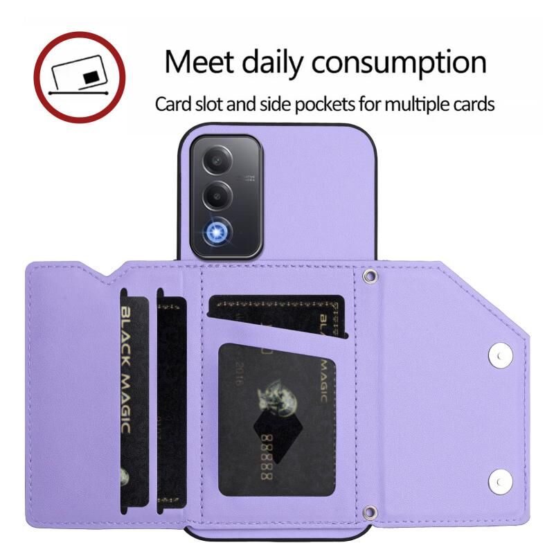 Θήκη τηλεφώνου για OPPO A3 Pro Global με αίσθηση δέρματος, τέσσερις θήκες καρτών και λουρί καρπού (Μωβ)