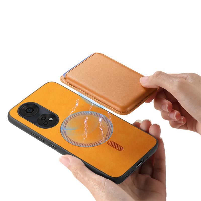 Για OPPO A3 Pro Retro Magsafe Θήκη Κάρτας PU Back Cover (Κίτρινο)