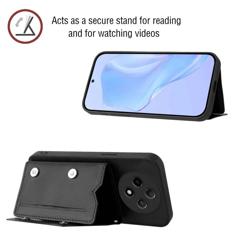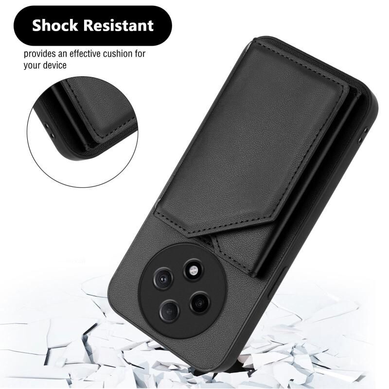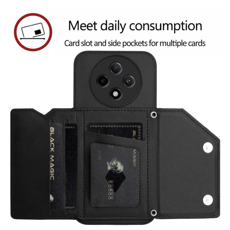 Θήκη τηλεφώνου για OPPO A3 Pro με αίσθηση δέρματος, τέσσερις θήκες καρτών και λουρί καρπού (Μαύρο)