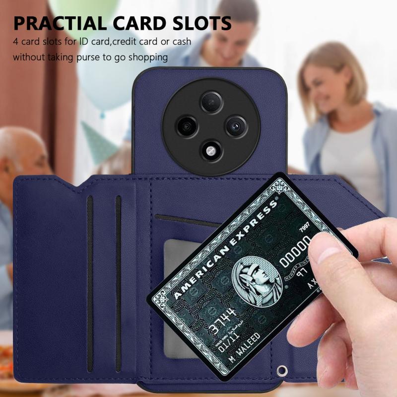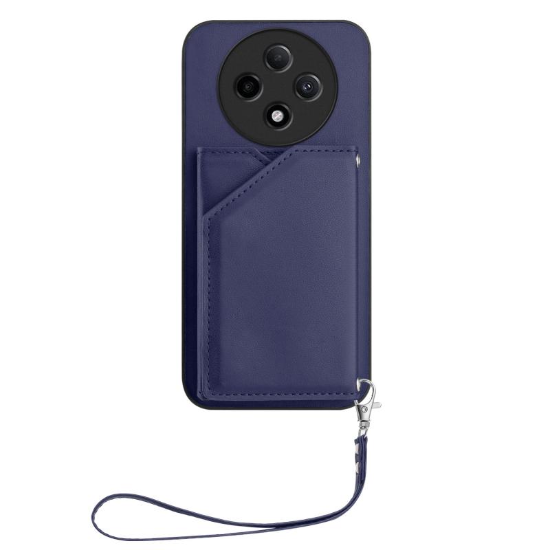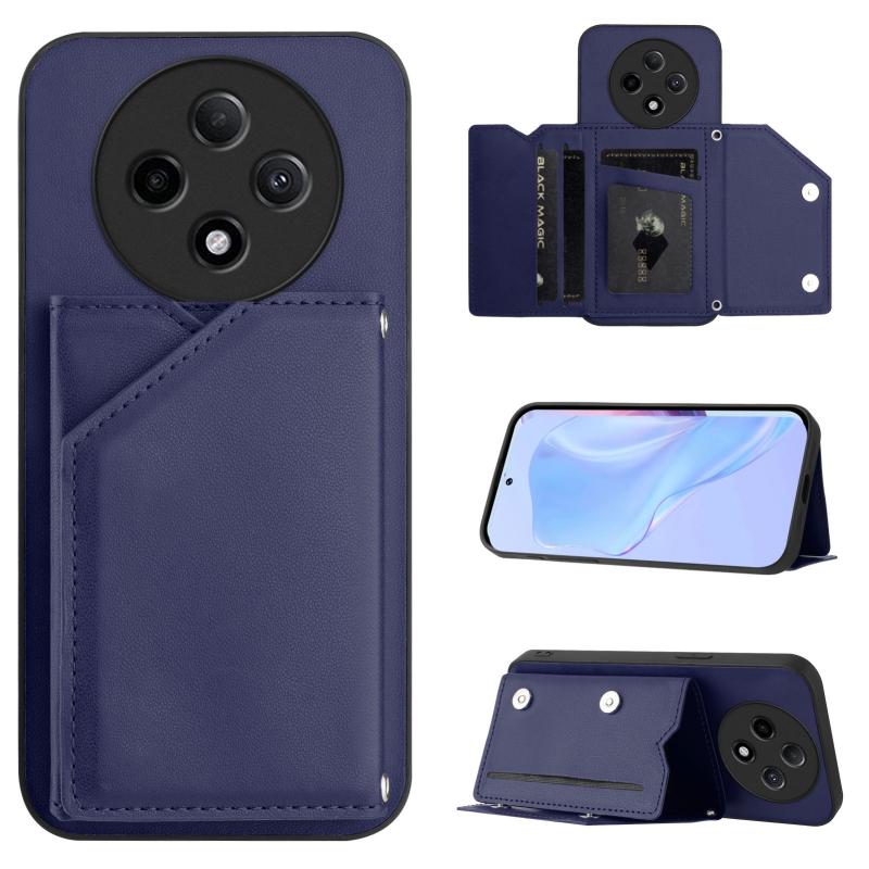 For OPPO A3 Pro Skin Feel Four Card Slots Phone Case with Wrist Strap(Blue)