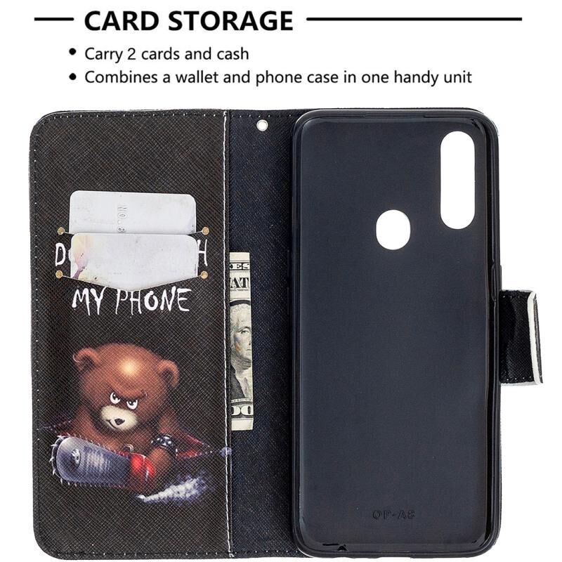 Θήκη δέρματος οριζόντιας αναδίπλωσης με σχέδια πολύχρωμης ζωγραφικής για Oppo A31 (2020) / A81 με βάση & υποδοχές καρτών & πορτοφόλι (Αρκούδα)