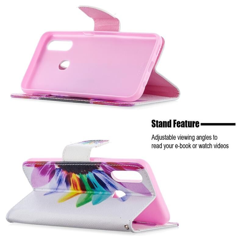 Θήκη δέρματος οριζόντιας αναδίπλωσης με σχέδια πολύχρωμης ζωγραφικής για Oppo A31 (2020) / A81 με βάση & υποδοχές καρτών & πορτοφόλι (Ηλίανθος)