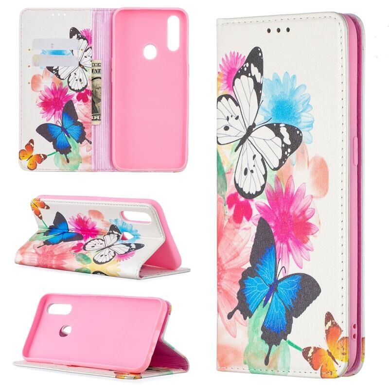 Θήκη για OPPO A31 (2020) με πολύχρωμο σχέδιο, αόρατο μαγνητικό, οριζόντιο flip από δερματίνη PU με βάση & θήκες για κάρτες & πορτοφόλι (Κόκκινο)
