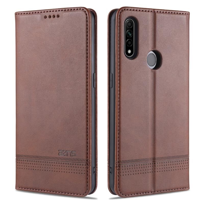 Θήκη δέρματος οριζόντιας αναδίπλωσης με μαγνητικό κλείσιμο και υφή μοσχαριού για OPPO A31 / A8 AZNS, με θήκες για κάρτες, στήριξη & πορτοφόλι (Σκούρο Καφέ) (Σκούρο καφέ)