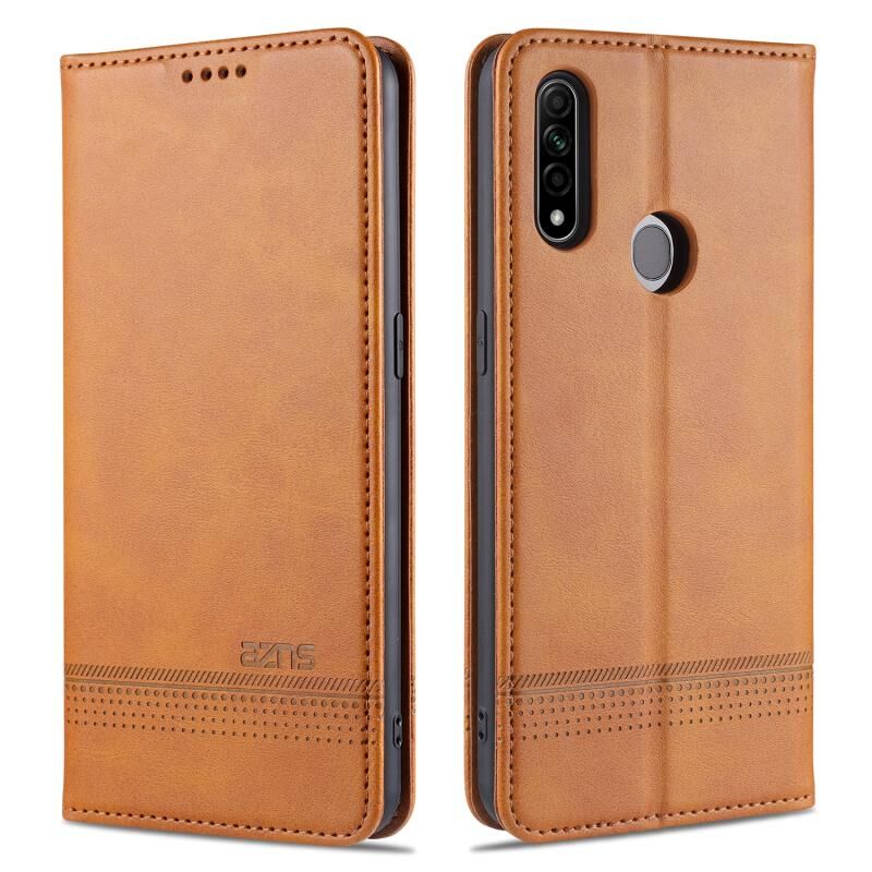 Θήκη δέρματος οριζόντιας αναδίπλωσης με μαγνητικό κλείσιμο και υφή μοσχαριού για OPPO A31 / A8 AZNS, με θήκες για κάρτες, στήριξη & πορτοφόλι (Σκούρο Καφέ) (AZNS)