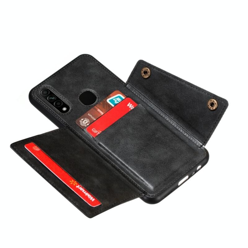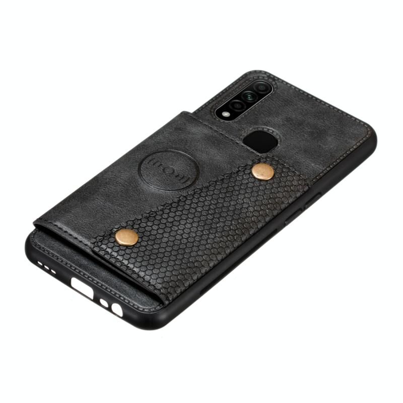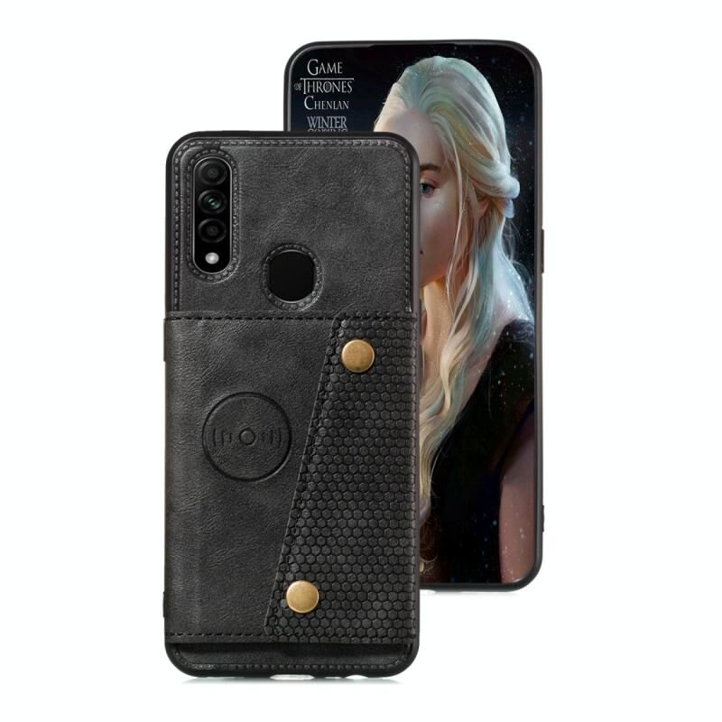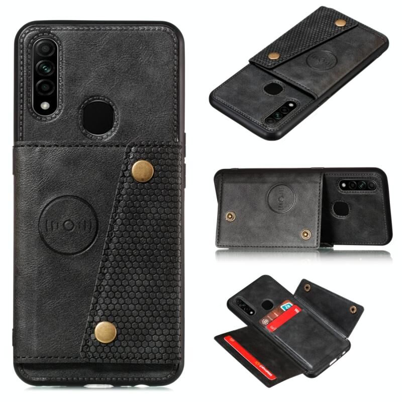 Για OPPO A31 / A8 PU + TPU Shockproof μαγνητική προστατευτική θήκη με υποδοχές για κάρτες (Μαύρο)