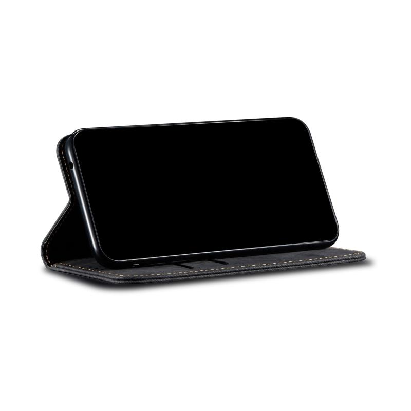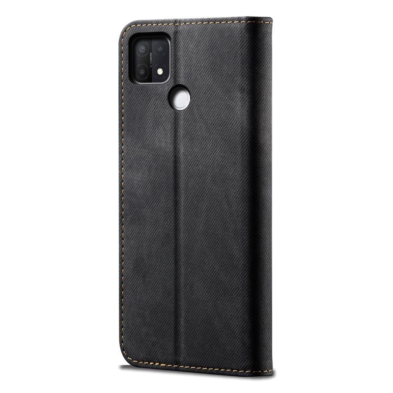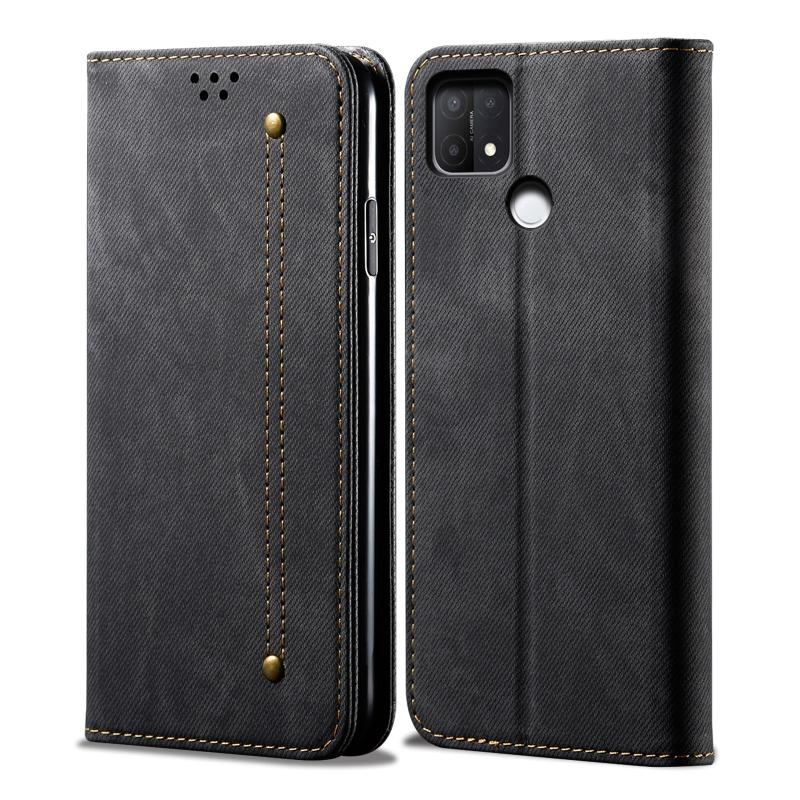 For OPPO A35 / A15 / A15S Denim Texture Casual Style Leather Phone Case(Black)