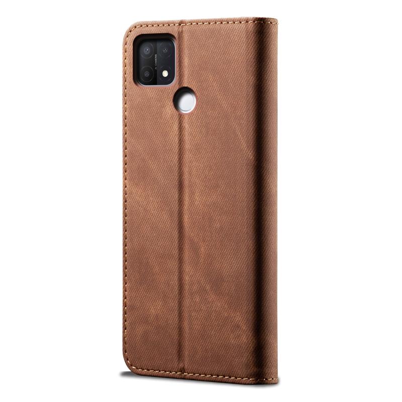 For OPPO A35 / A15 / A15S Denim Texture Casual Style Leather Phone Case(Brown)