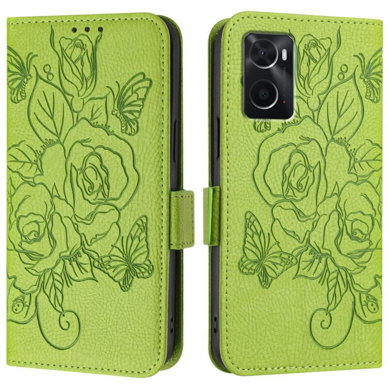 Για OPPO A36 4G / A76 4G / A96 4G / K10 4G Ανάγλυφο Rose RFID Anti-theft Δερμάτινη θήκη τηλεφώνου (Πράσινο)