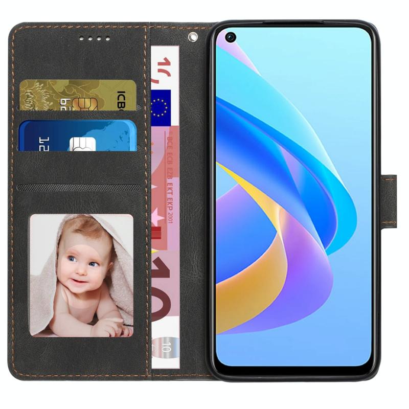 Θήκη τηλεφώνου από δέρμα μοσχαριού με φανταστική αίσθηση και υφή για OPPO A36 4G / A76 4G / A96 4G / Realme 9i 4G (Μαύρο)