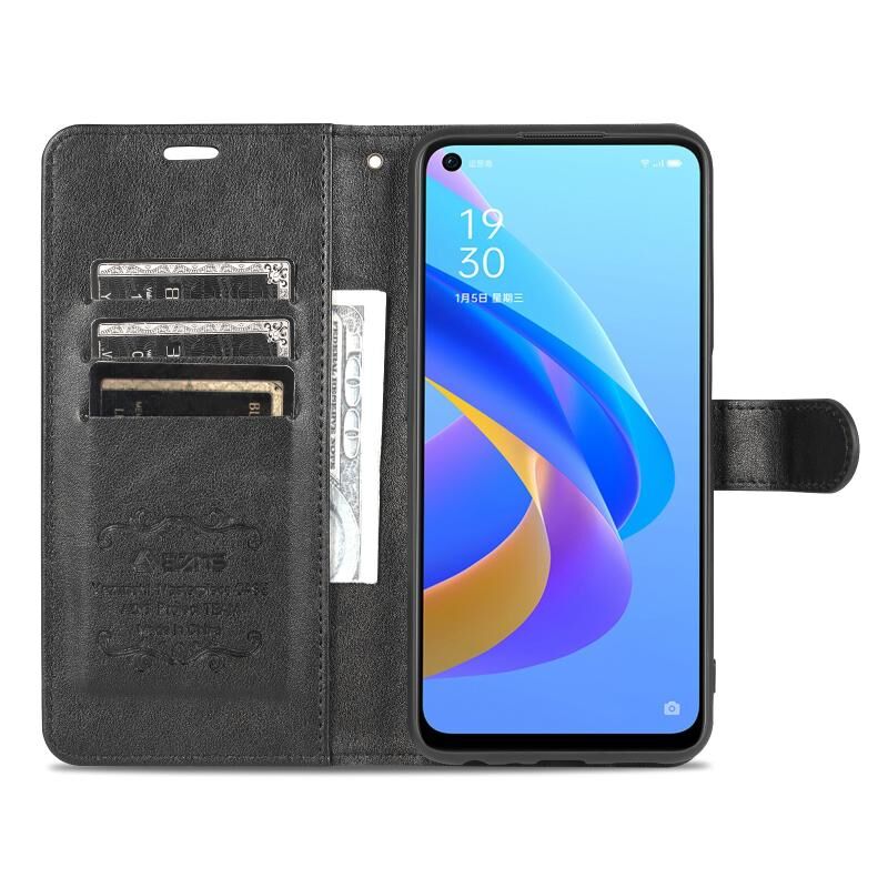 Για OPPO A36 4G / A76 4G AZNS Sheepskin Texture Flip δέρμα τηλέφωνο υπόθεση (μαύρο) (AZNS)