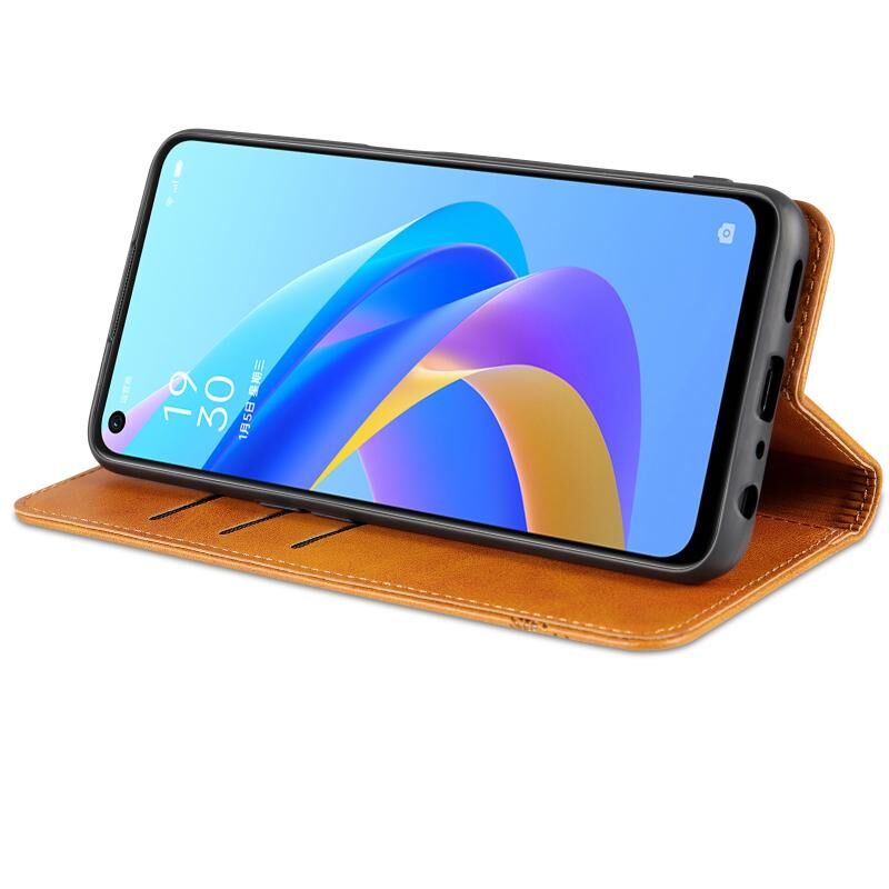Θήκη τηλεφώνου από δέρμα με μαγνητικό κλείσιμο και υφή μοσχαριού για OPPO A36 4G/A76 4G (Global) AZNS (Καφέ σκούρο) (Καφέ)