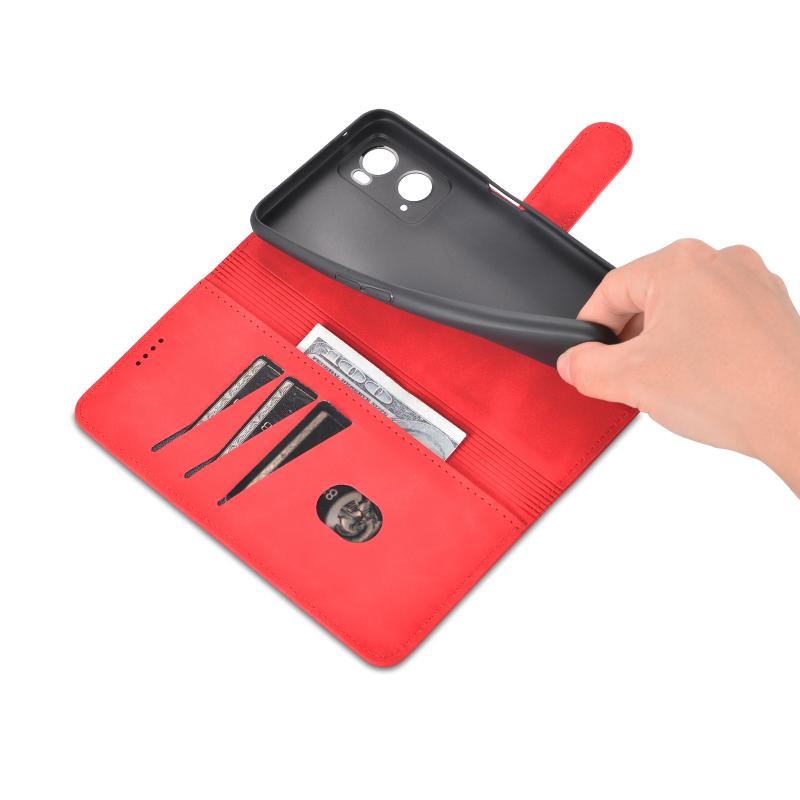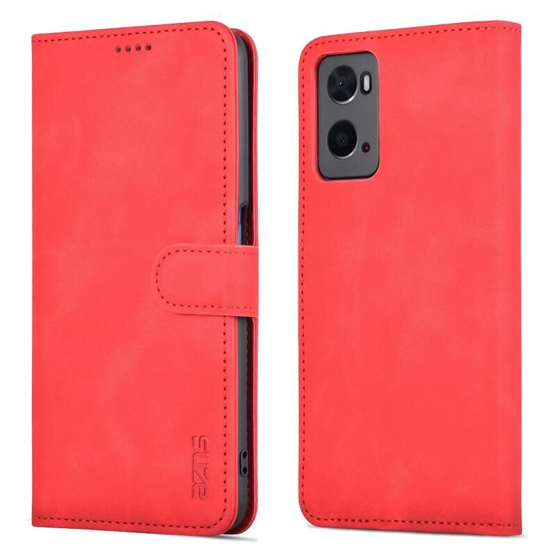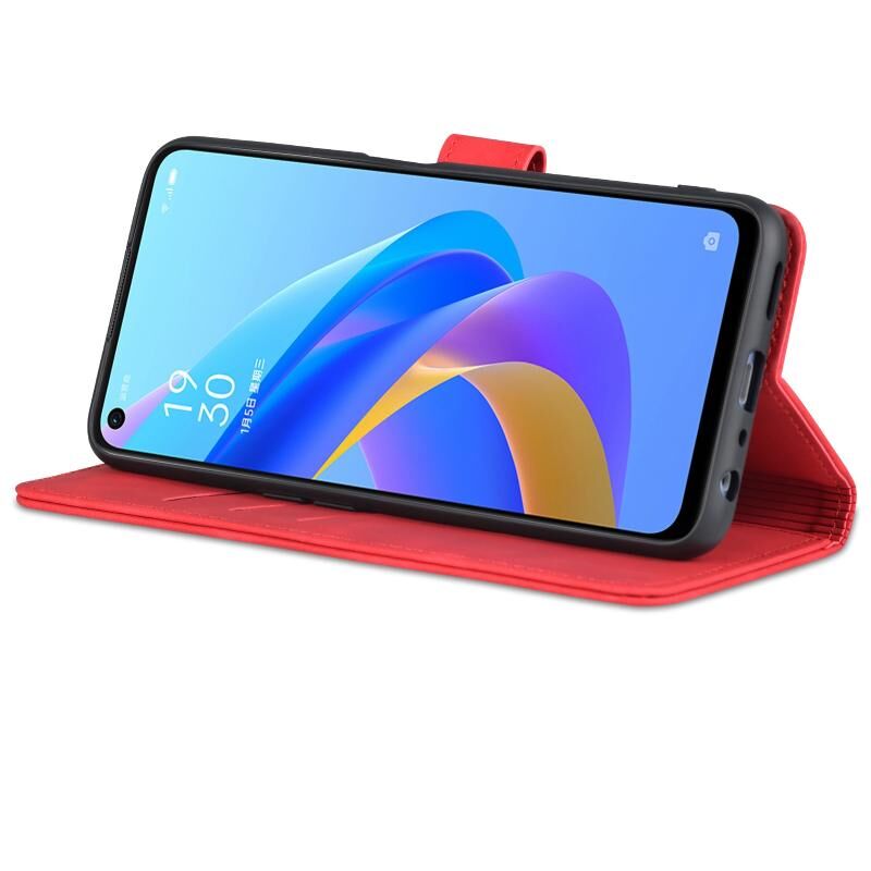 Θήκη τηλεφώνου από δέρμα με οριζόντιο άνοιγμα για OPPO A36 4G/A76 4G (Global) με υφή μοσχαρίσιου δέρματος και αίσθηση AZNS (Καφέ) (Κόκκινο)