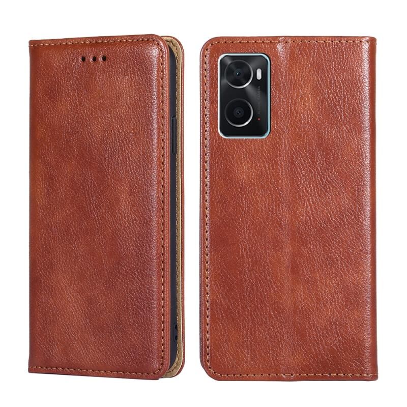 Για OPPO A36 4G / A76 4G Global Pure Color μαγνητική δερμάτινη θήκη τηλεφώνου (καφέ)