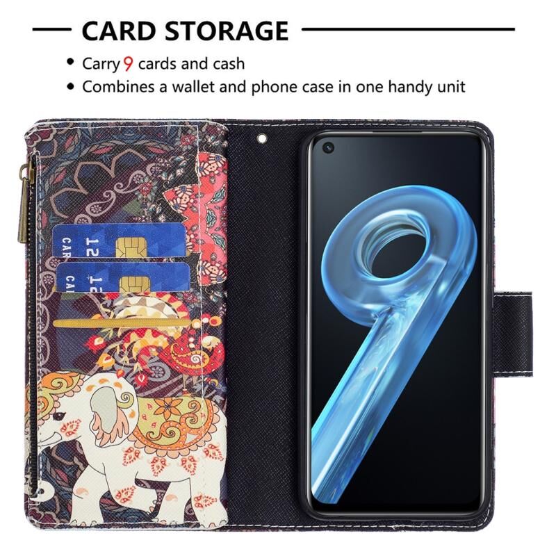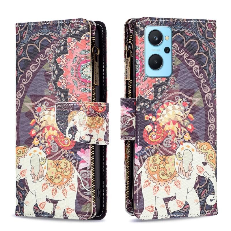 Θήκη τηλεφώνου από δέρμα με φερμουάρ και πολύχρωμο σχέδιο (Λουλούδια και Ελέφαντες) για OPPO A36 4G / A96 4G / A76 4G / K10 4G / Realme 9i