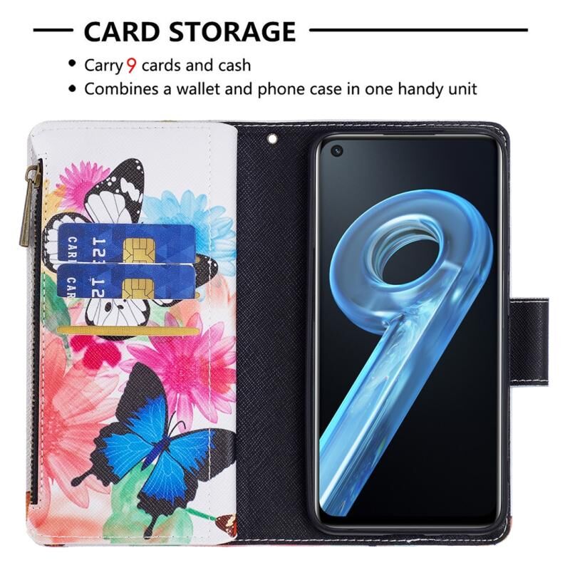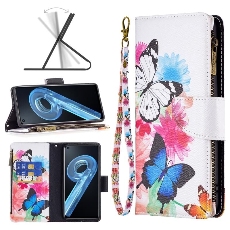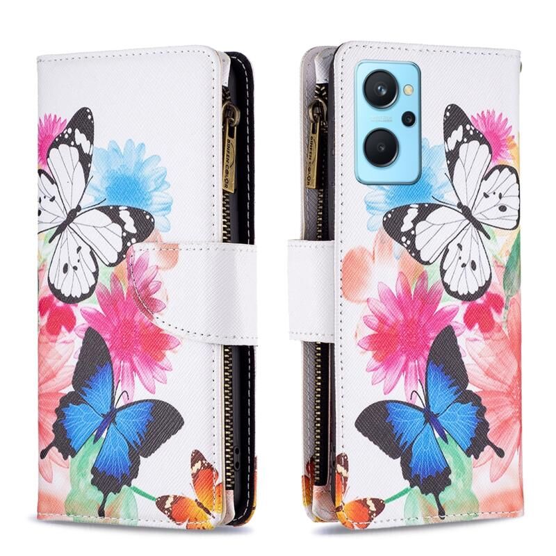 Θήκη τηλεφώνου από δέρμα με φερμουάρ και πολύχρωμο σχέδιο (Δύο πεταλούδες) για OPPO A36 4G / A96 4G / A76 4G / K10 4G / Realme 9i.