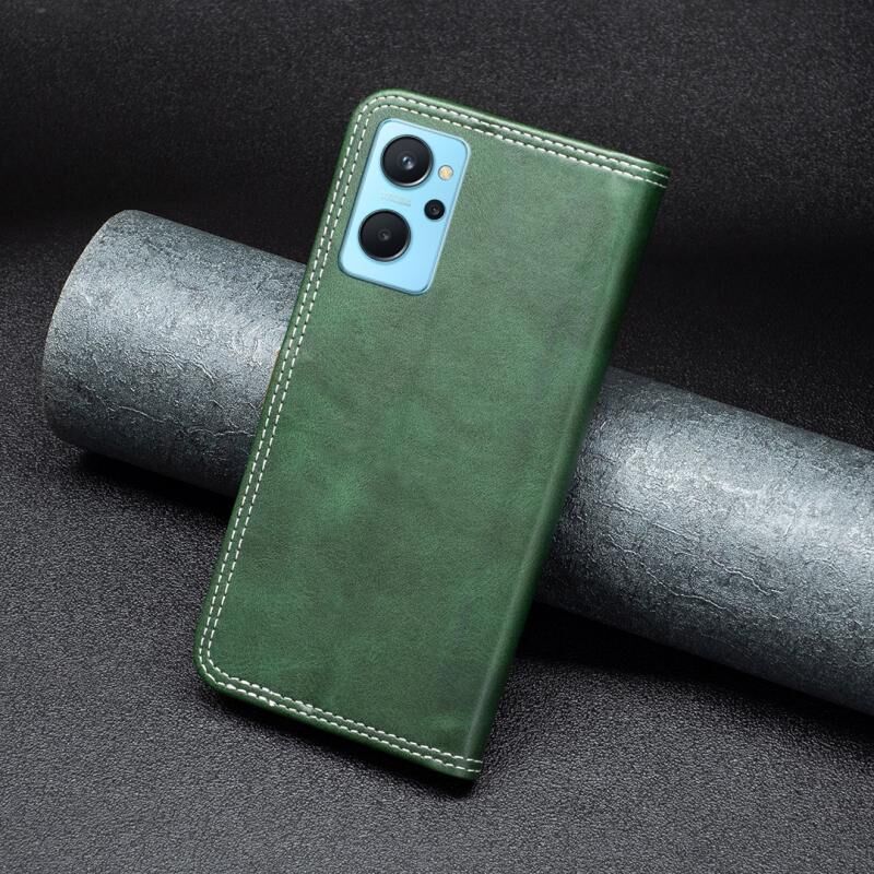 Θήκη τηλεφώνου από δέρμα με διπλή ραφή και αντιστοίχιση χρωμάτων για OPPO A36 4G / A96 4G / A76 4G / Realme 9i / K10 4G (Μαύρο)