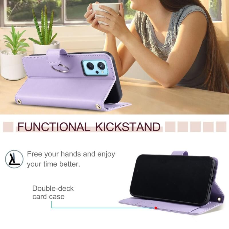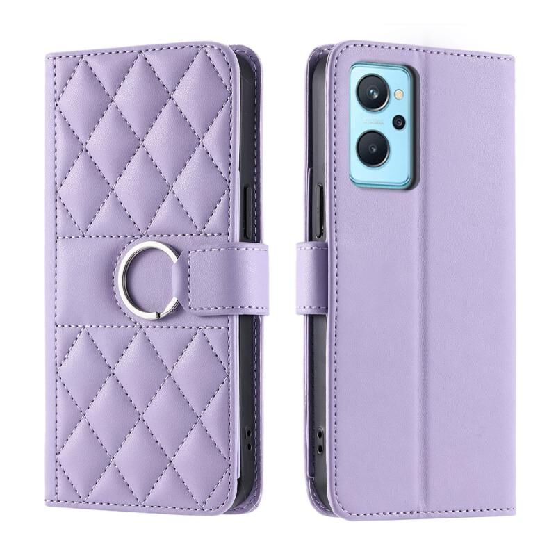 For OPPO A36 / A76 / A96 4G / K10 4G Ring Buckle Rhombic Leather Phone Case(Purple)