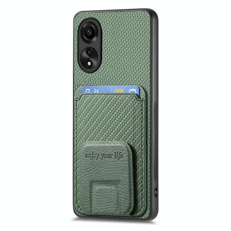 Για OPPO A38 4G / A18 4G Θήκη με Κάρτες & Στήριξη, Carbon Fiber (Πράσινο)