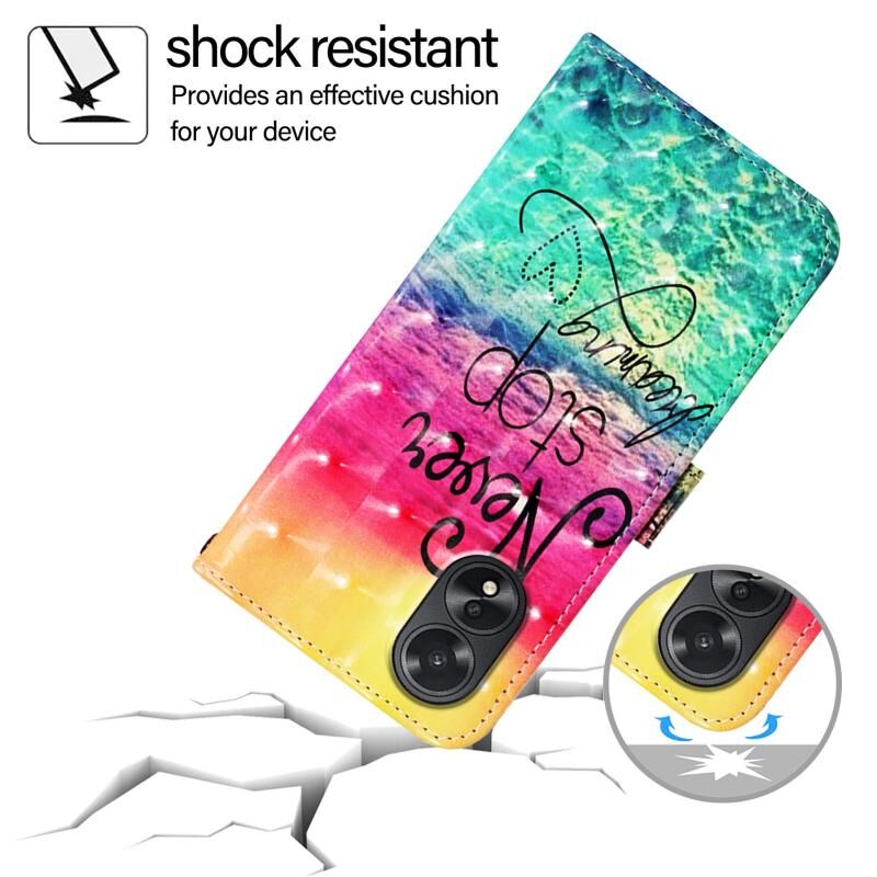 Θήκη τηλεφώνου από δέρμα με οριζόντιο άνοιγμα και τρισδιάστατη ζωγραφική για OPPO A38 4G / A18 4G (Κυνηγώντας Όνειρα)
