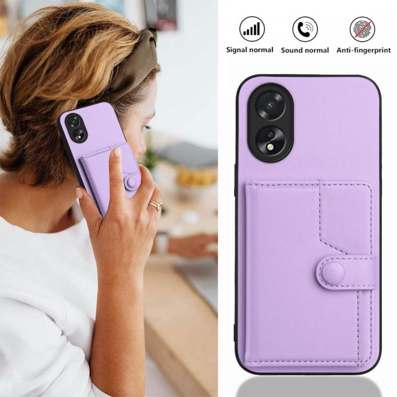 For OPPO A38 4G / A18 4G Global Button Card Bag RFID Anti-theft Phone Case(Purple)