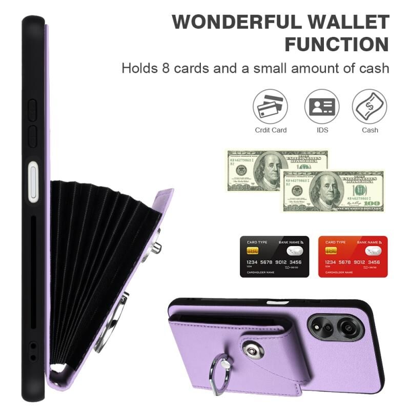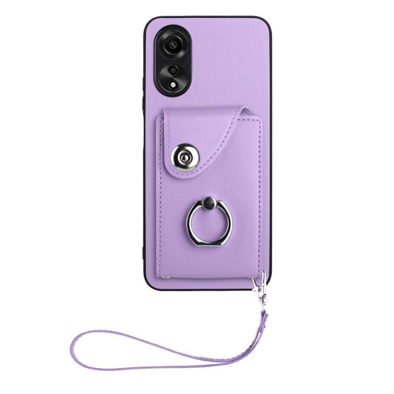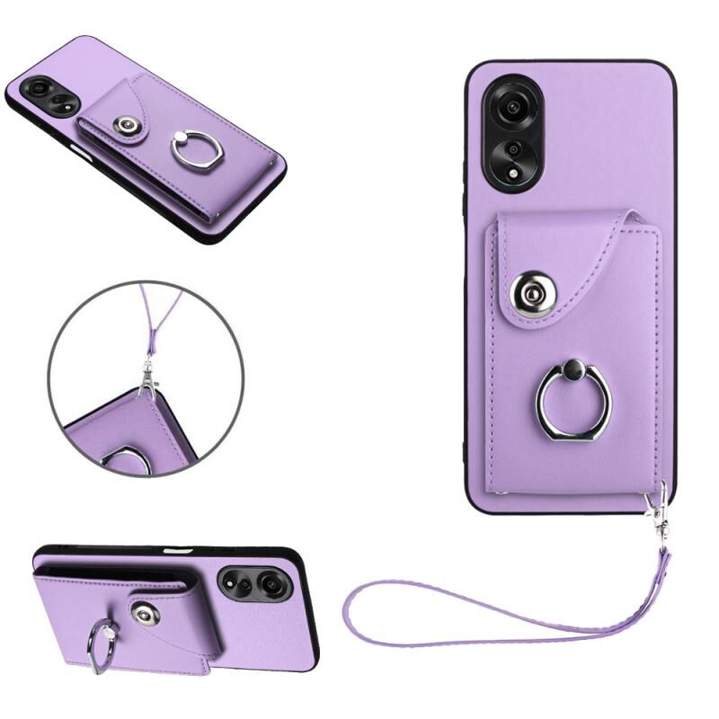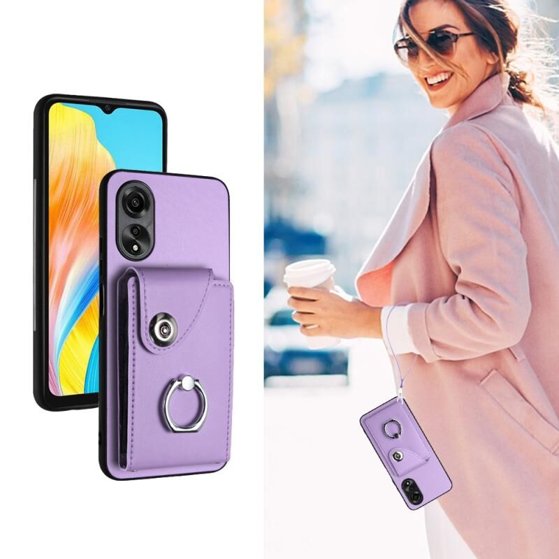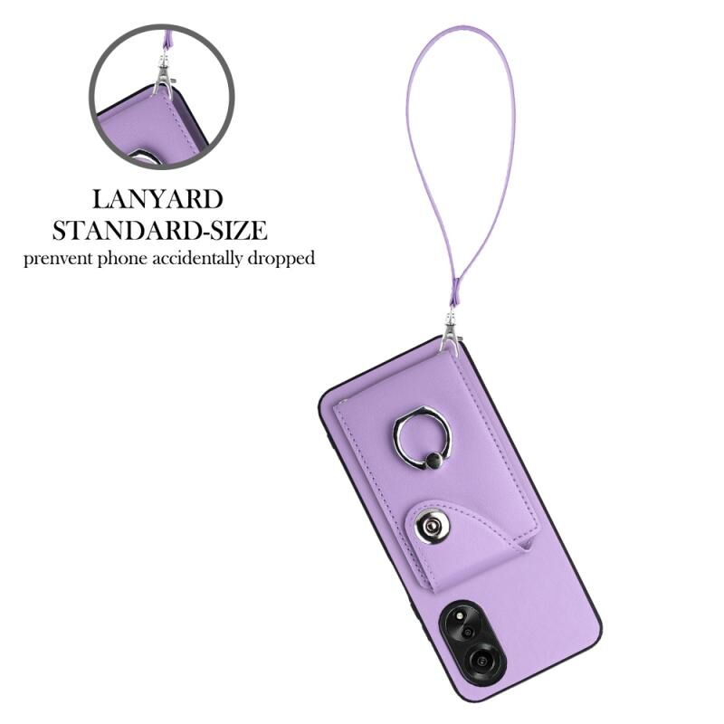 Για OPPO A38 4G / A18 4G Global Organ Card τσάντα δαχτυλίδι τσάντα κάτοχος PU υπόθεση τηλεφώνου με κορδόνι (Μωβ)