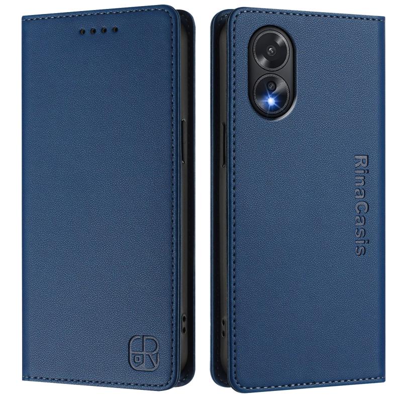 For OPPO A38 4G / A18 4G Global RC01 Dual-Folded Magnetic Suction RFID Leather Phone Case(Dark Blue)