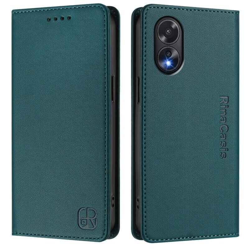 Θήκη τηλεφώνου από δέρμα με μαγνητική απορρόφηση και διπλή πτύχωση για OPPO A38 4G / A18 4G Global RC01 (Σκούρο πράσινο)