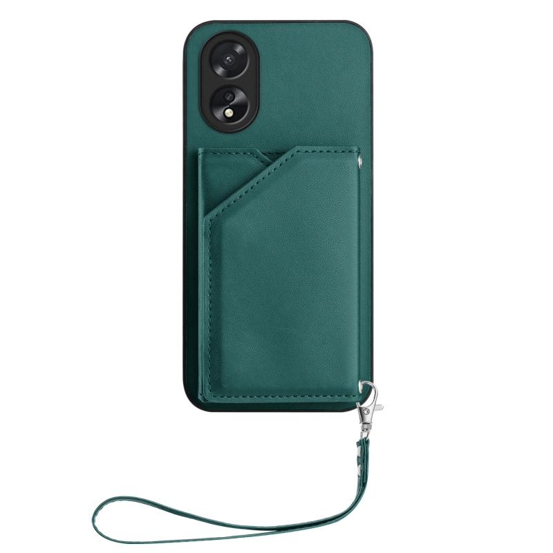For OPPO A38 4G / A18 4G Global Skin Feel Four Card Slots Phone Case with Wrist Strap(Green)
