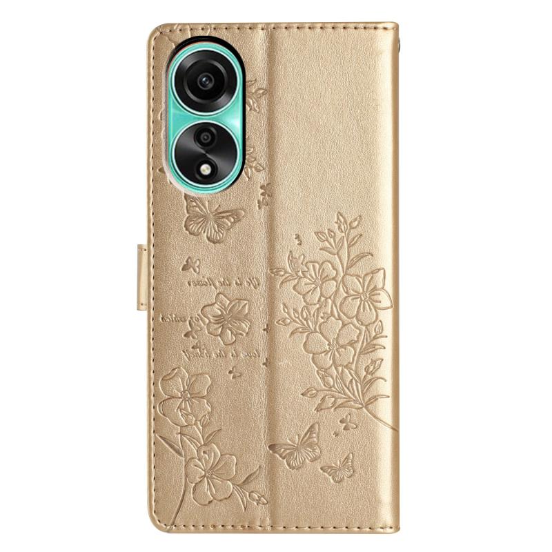 For OPPO A38 4G / A18 Butterflies and Flowers Leather Phone Case(Gold)