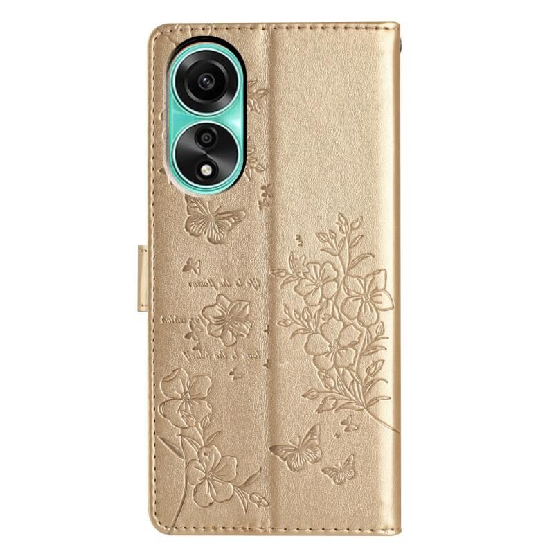 Θήκη τηλεφώνου από δέρμα με πεταλούδες και λουλούδια για OPPO A38 4G / A18 (Χρυσό)