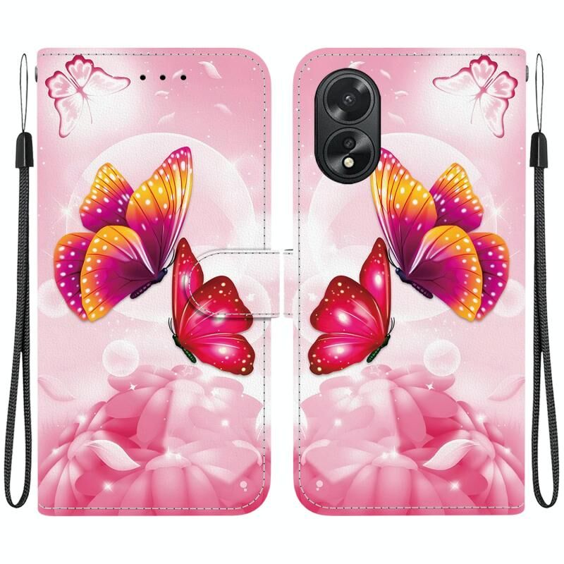 Θήκη τηλεφώνου από δέρμα με πολύχρωμο σχέδιο κρυστάλλινης υφής για OPPO A38 4G / A18 (Χρυσά Φτερά Πεταλούδας)