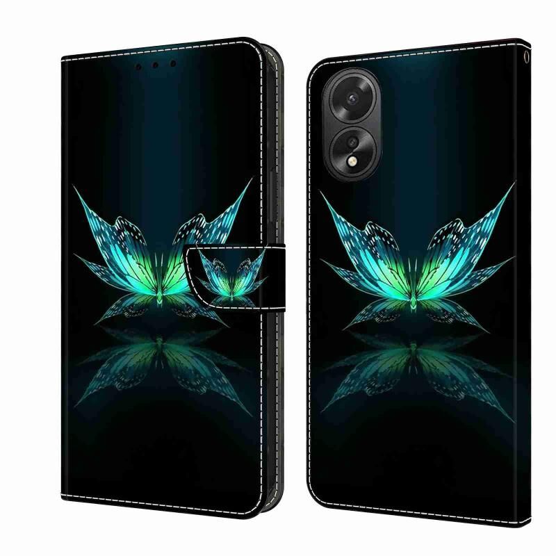 Θήκη κινητού τηλεφώνου από δέρμα, κρυστάλλινη, τρισδιάστατη, αντικραδασμική και προστατευτική για OPPO A38 4G (Αντανάκλαση Πεταλούδας)