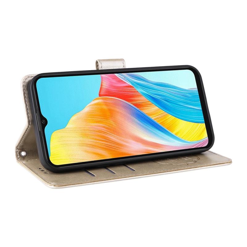 For OPPO A38 4G Global / A18 4G Embossed Butterfly Flowers Leather Phone Case(Gold)