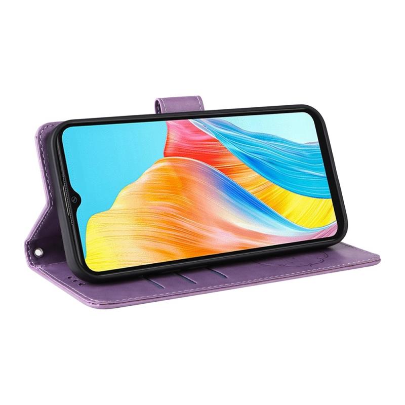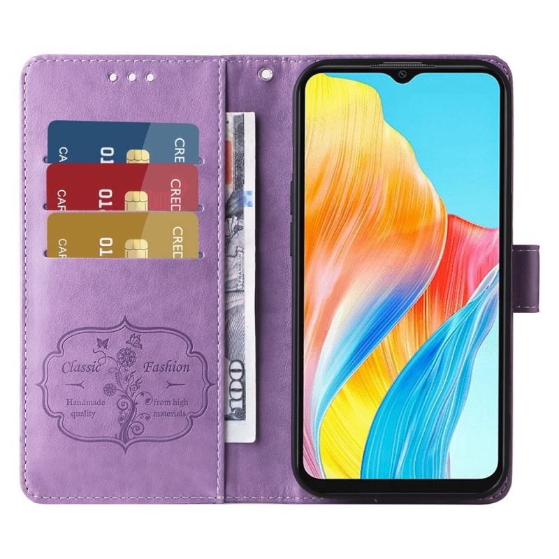 For OPPO A38 4G Global / A18 4G Embossed Butterfly Flowers Leather Phone Case(Purple)