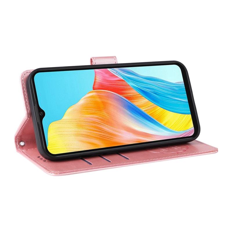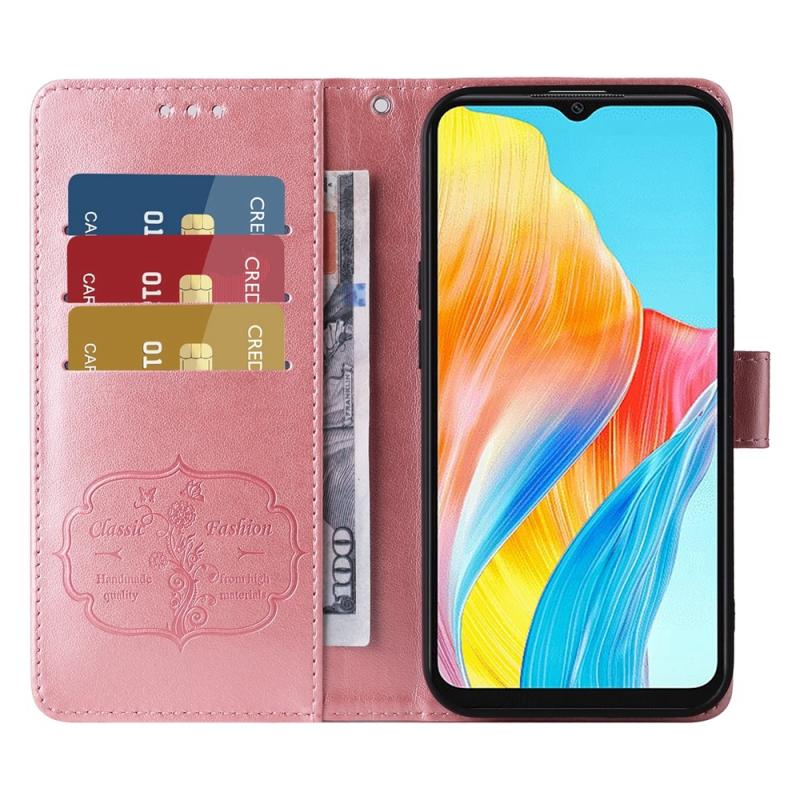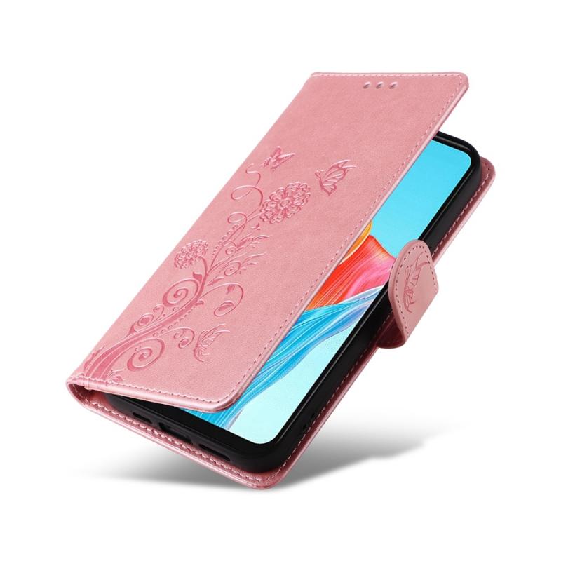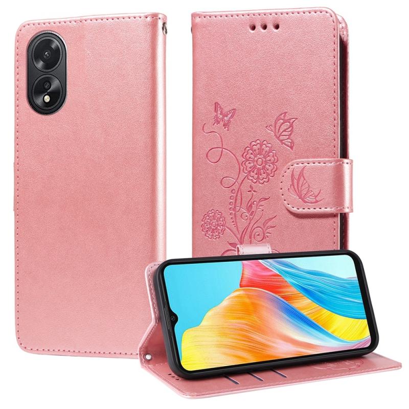For OPPO A38 4G Global / A18 4G Embossed Butterfly Flowers Leather Phone Case(Rose Gold)